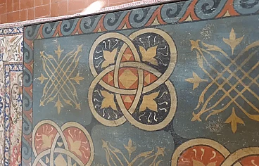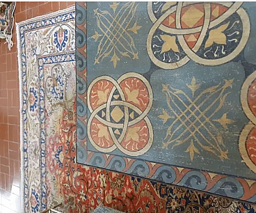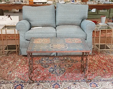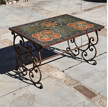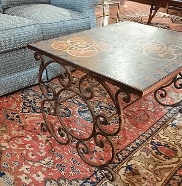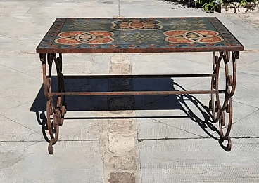 Coffee table in wrought iron and hand-painted wood, 2000s