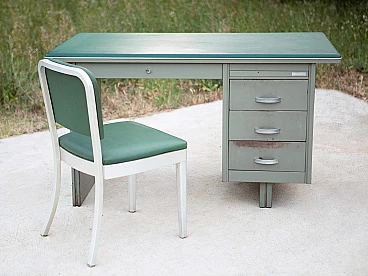 Metal and skai desk in the style of Gio Ponti with chair, 1960s