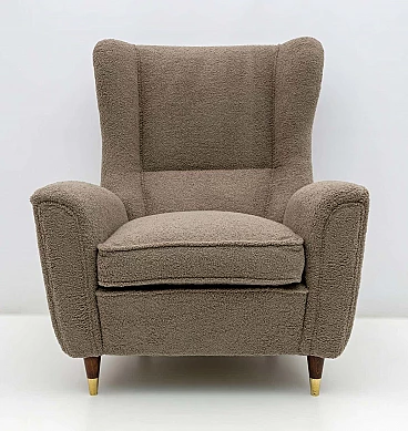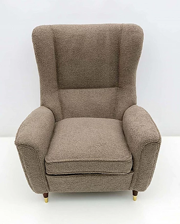 High-backed bouclè armchair in Gio Ponti style by ISA Bergamo, 1950s