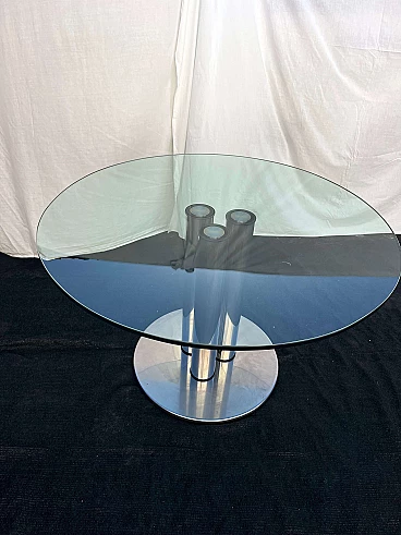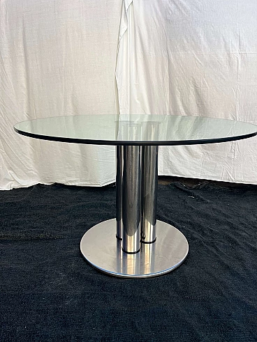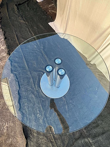 Marcuso steel table with glass top by Marco Zanuso for Zanotta, 1970s