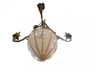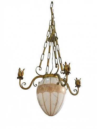 Gilded wrought iron and glass chandelier by Pier Luigi Colli, 1960s