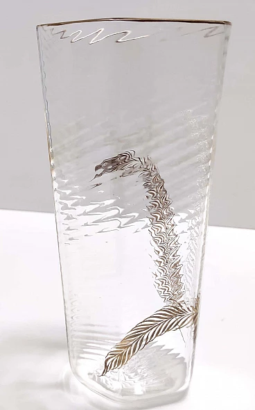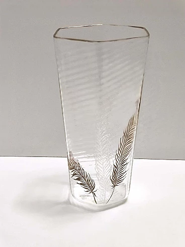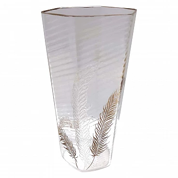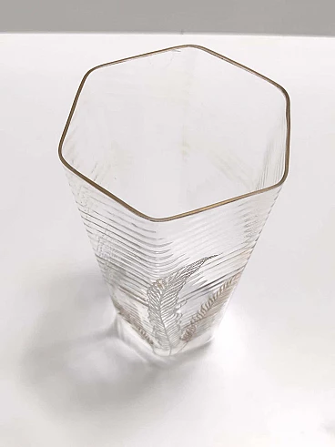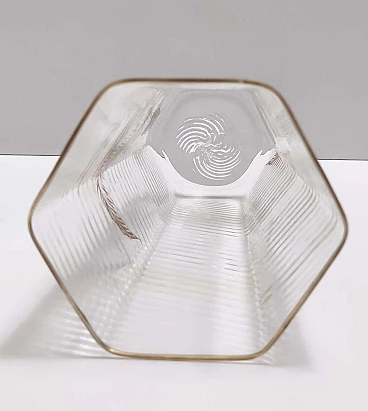 Transparent and gilded Murano glass hexagonal vase by Cenedese, 1950s