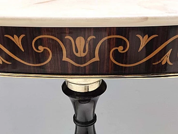 Inlaid beech and Rosa Portogallo marble half-moon console, 1950s