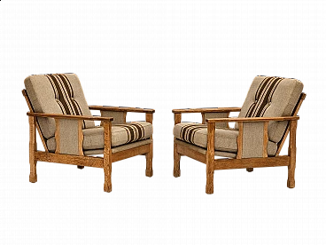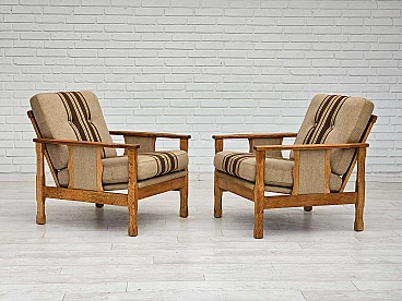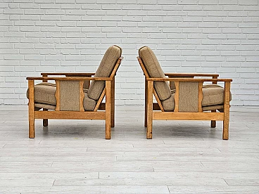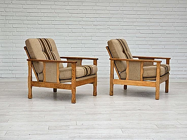 Pair of Danish oak and wool armchairs, 1970s