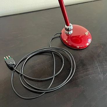 Vintage burgundy-coloured ministerial desk lamp with white shade, 45 cm high. The body of the lamp is burgundy lacquered metal with chrome-plated joints. The two joints, one at the base and one at the height of the diffuser, allow the lamp to be adjusted as desired. In very good condition, it has only a few slight marks on the diffuser (see photo for details). The lamp has been restored, but the original red paint has not been touched up. The ministerial desk lamp has been professionally rewired with black electrical cable and black socket. It has an E27 socket.