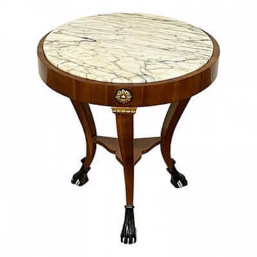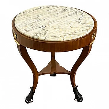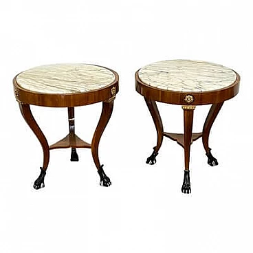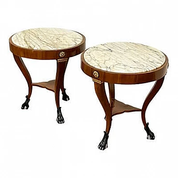 Pair of French walnut coffee tables with marble top, 1990s