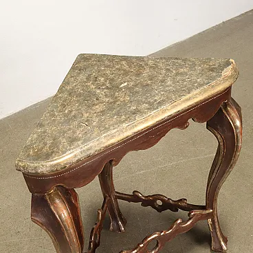 Pair of Barocchetto style gilded and lacquered wood corner consoles 8