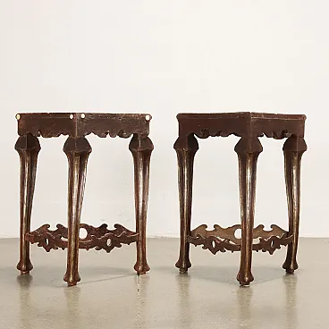 Pair of Barocchetto style gilded and lacquered wood corner consoles 1