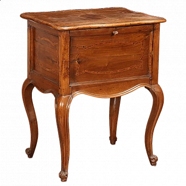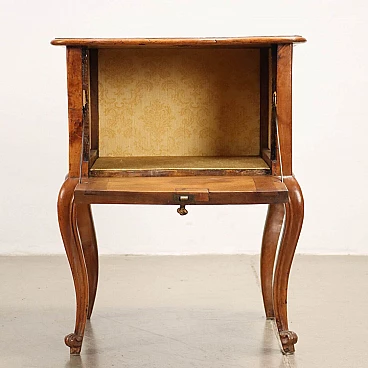 Barocchetto inlaid walnut bedside table with flap door, mid-18th century