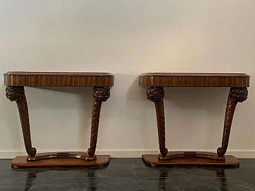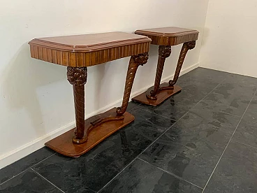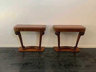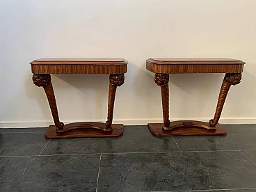 Pair of Art Deco console tables with cornucopia-shaped pilasters, 1930s