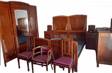 Complete bedroom in walnut and marble, 1920s