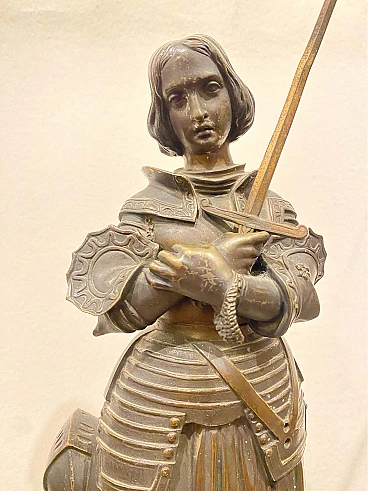 Alabaster and bronze clock with sculpture of Joan of Arc, early 20th century