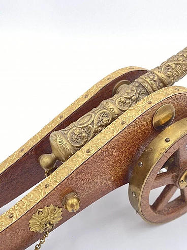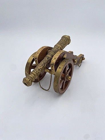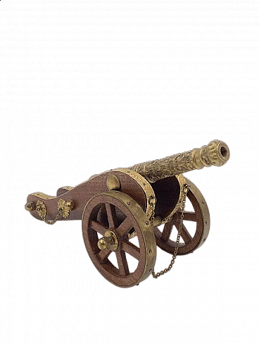 Wood and brass cannon display model, 1960s. In very good preserved condition, no aesthetic or structural defects to report, only slight and obvious signs of time present, see photos.