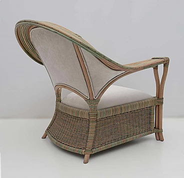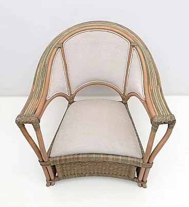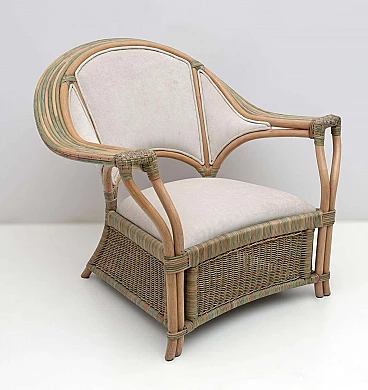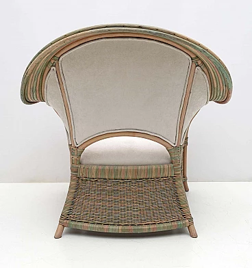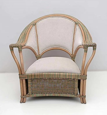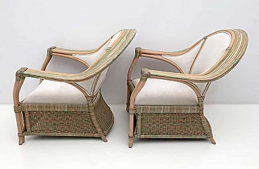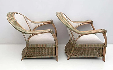 Pair of wicker, rattan and ivory fabric armchairs, 1970s