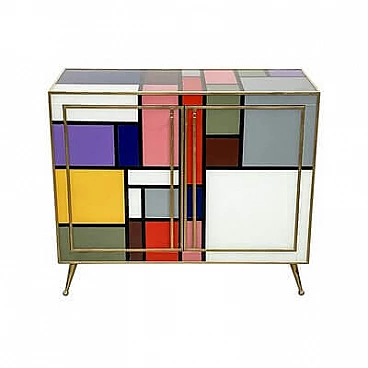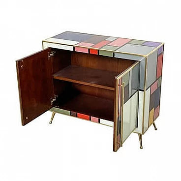 Sideboard with wooden frame and multicoloured Murano glass covering, 1980s