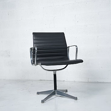 True icons of 20th-century design, the Aluminium Group series of chairs were designed by Charles and Ray Eames in the 1950s and first produced in 1958, setting what is still the standard for meeting/office chairs today. A clean, exposed structure combines the stability and lightness of aluminum with the comfort of upholstery - leather, fabric or mesh - which, being kept taut only by attachment to the sides, becomes an integral part of the joint.