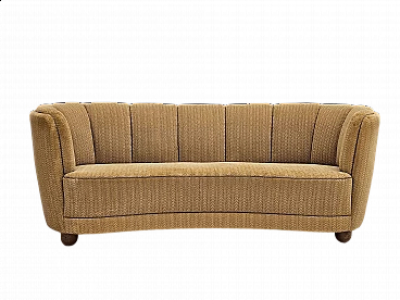 Danish Banana three-seater sofa in honey-coloured fabric, 1960s
