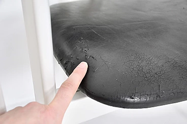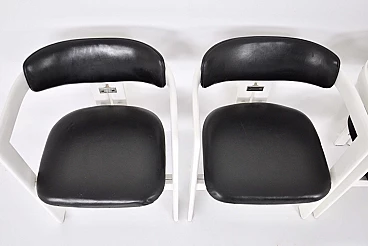 Set of 4 black and white wood and leather chairs by Augusto Savani for Pozzi. Model: Pamplona. Seat height: 44 cm Wear due to time and age of the chairs.