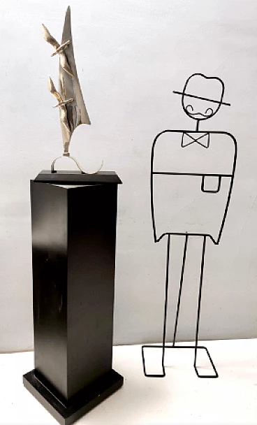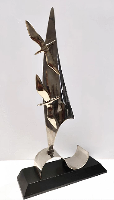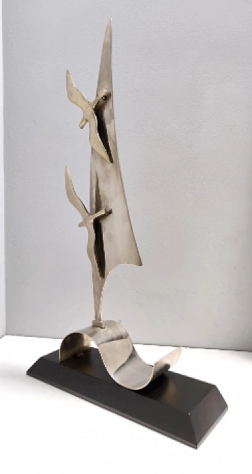 Nickel-plated brass sailboat and seagulls sculpture, 1940s