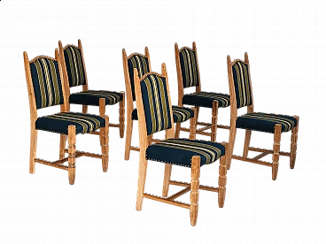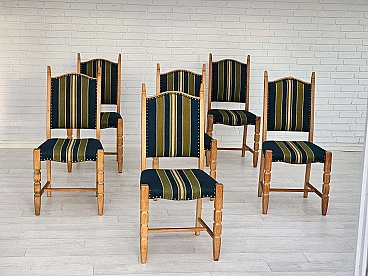 6 Danish chairs in wool and oak, 1970s
