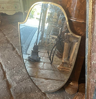 Brass shield-shaped mirror in the style of Gio Ponti, 1950s
