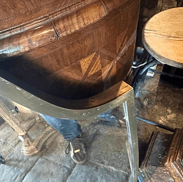 Shield-shaped wall mirror designed and produced in Italy in the 1950s in the manner of Gio Ponti, who used these mirrors to furnish the most beautiful Italian homes of that period. The mirror is shaped like a shield, an unusual and distinctive design choice that adds visual interest. The shield shape is characterized by a rounded top. This shape is not only functional but also serves as a decorative element, contributing to the uniqueness of the mirror. The frame is made of brass, a common material in mid-century modern design. Brass adds warmth, elegance and a touch of luxury to the piece. The brass structure has a shiny finish that enhances its visual appeal. The mirror's design reflects the mid-century modern ethos of clean lines, simplicity and attention to functionality. This mirror can be used in different environments, from the living room to the entrance, from the bedroom to the bathroom. Its large size and particular shape make it suitable for both functional and decorative purposes. This wall mirror is an elegant and timeless piece of mid-century design. It embodies the principles of simplicity, functionality and aesthetics that characterized the era. The shield shape and brass frame make it a stunning and unique addition to any interior, serving as both a functional object and a work of art.