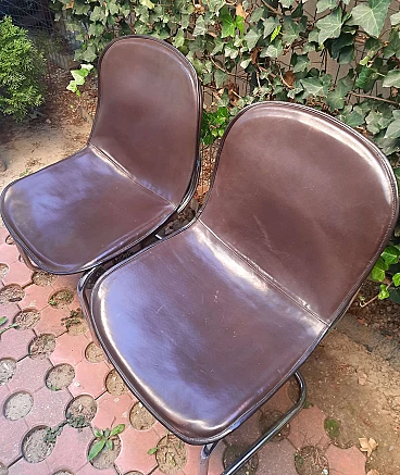 Pair of chairs with chrome frame covered in leather by Gastone Rinaldi, 1960s