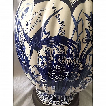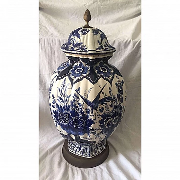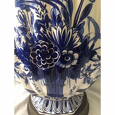 Dutch Delft ceramic urn vase hand-painted in white and blue with floral decoration, 19th century