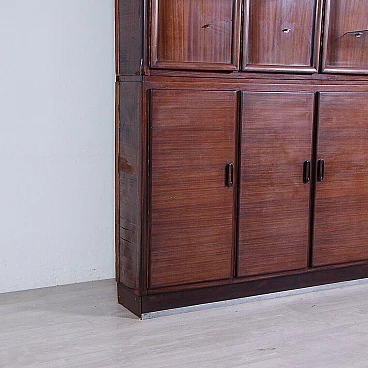 The lower part has 5 doors in mahogany veneer, the interior has no vertical dividers, so it is a single space; There are two removable shelves that run along the entire length.