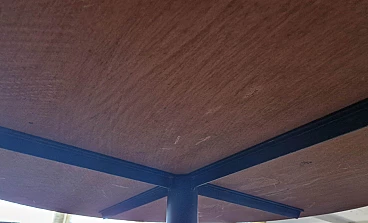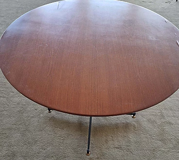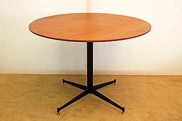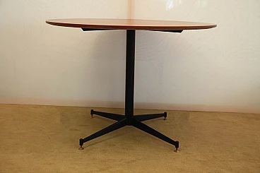 Round black steel and teak veneered wood table, 1960s