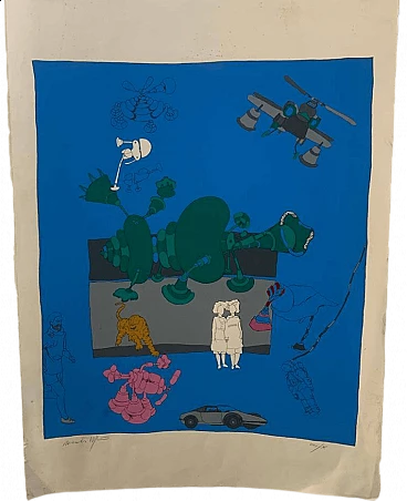 Renato Volpini, Characters and useless machines, lithograph, 1960s