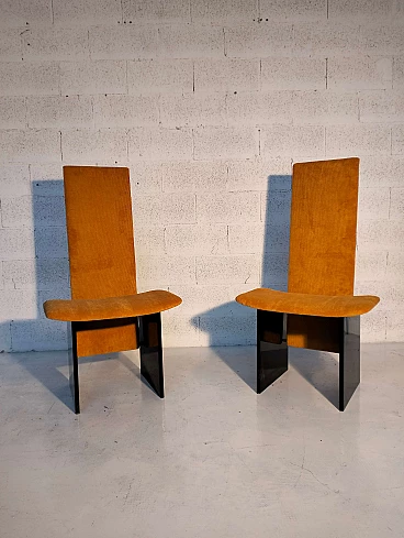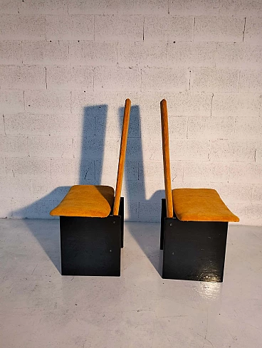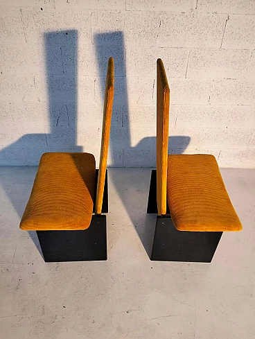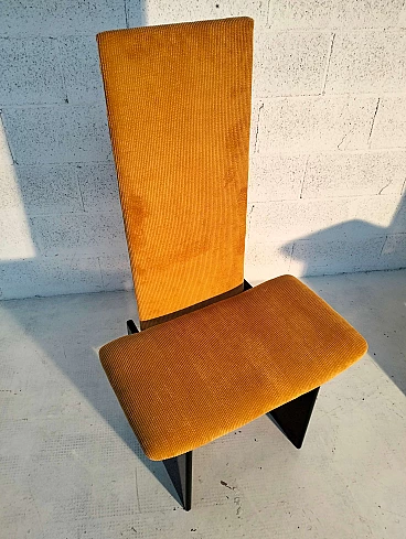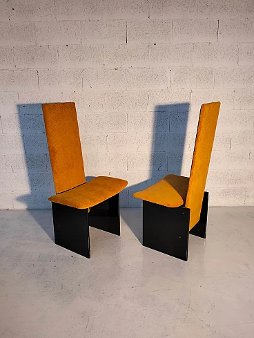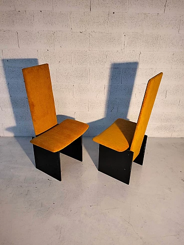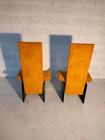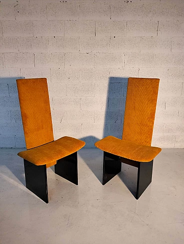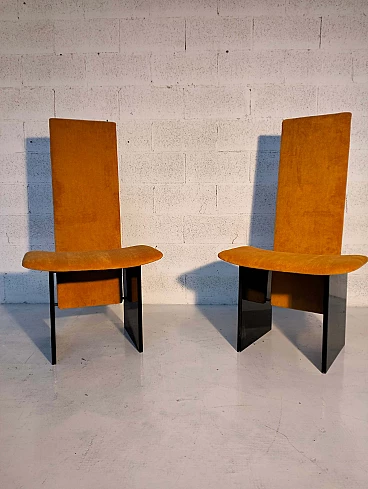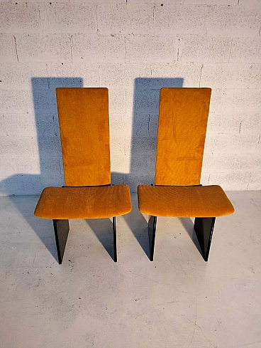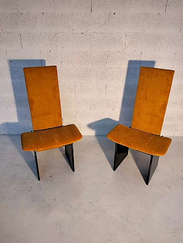 Pair of Rennie chairs by Kazuhide Takahama for Simon Gavina, 1970s. Structure in lacquered wood and upholstery in yellow ocher velvet. Very good condition with small and inevitable signs of age and use on the lacquered parts.