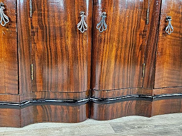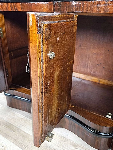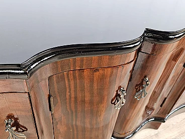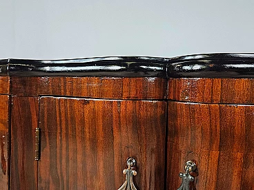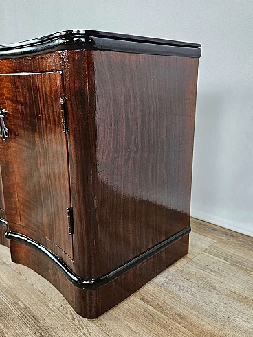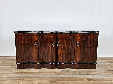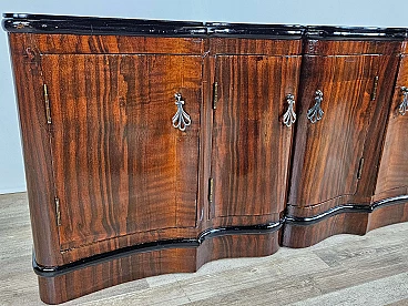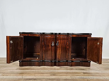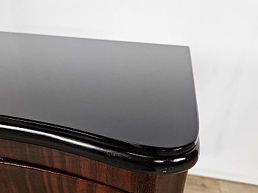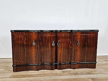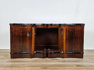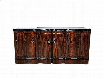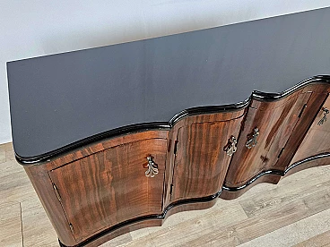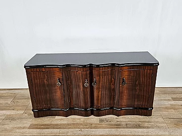 Art Deco mahogany-root and black glass sideboard, 1950s