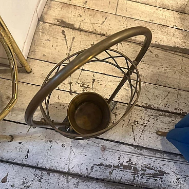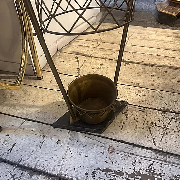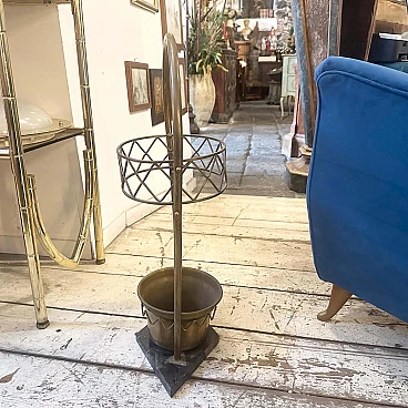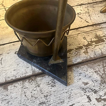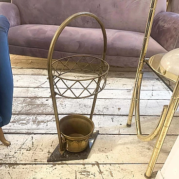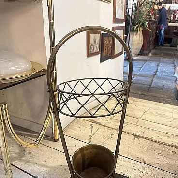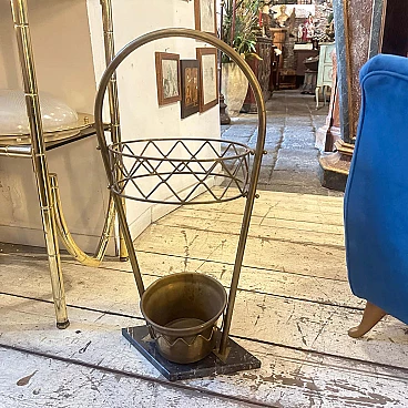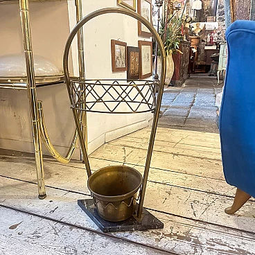 A fantastic marble and brass umbrella stand designed and made in Italy in the 1950s in the style of Gio Ponti. The brass is in original patina, the black and white marble is in perfect condition. This umbrella stand reflects the Mid-Century Modern aesthetic. The umbrella frame is made of brass, a material favoured during the Mid-Century Modern era for its warmth and its ability to integrate with various design styles. The base features a black and white marble that lends a luxurious and sophisticated touch to the piece. The umbrella stand has clean, elegant lines typical of Mid-Century Modern design. The lines are simple and elegant, reflecting the minimalist approach of the era. Gio Ponti's style incorporates geometric shapes. The stand features geometric elements that add visual interest. The design emphasises functionality. The stand holds umbrellas and blends seamlessly into the overall décor. an open structure allows easy access to umbrellas and facilitates efficient drying The combination of brass and black marble exudes an air of elegance and sophistication, characteristic of both Gio Ponti's designs and the Mid-Century Modern aesthetic.