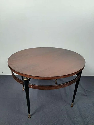 Round coffee table in wood and brass by Silvio Cavatorta, 1950s