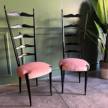 Pair of mahogany Chiavarine chairs attributed to Paolo Buffa, 1950s