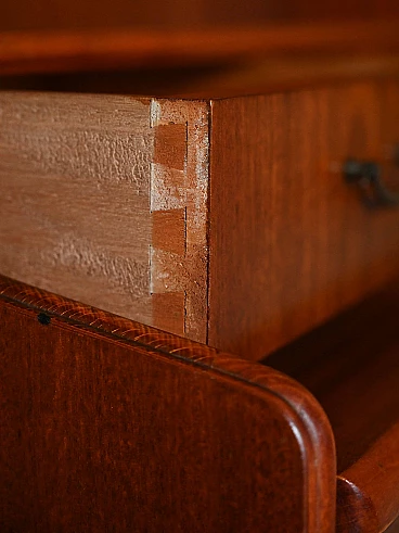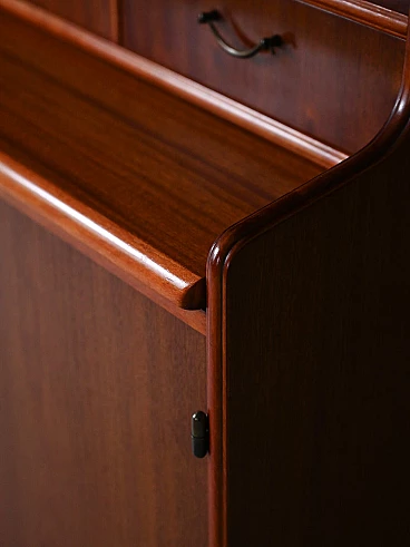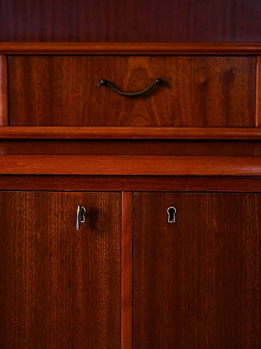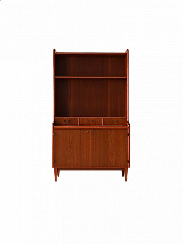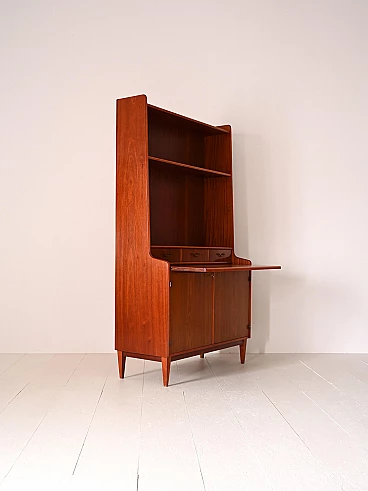 1960s cabinet with writing desk and shelf. An original 1960s piece of furniture of Scandinavian manufacture. In the lower part there is a compartment with hinged doors and a pull-out writing desk, while in the upper part there are three drawers with a metal handle and a frame with a shelf. A functional piece of furniture in perfect vintage style that will give the room a Hygge atmosphere. Good condition. A conservative restoration has been carried out. May show signs of time. Please pay attention to the photographs.