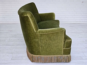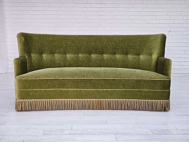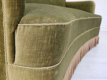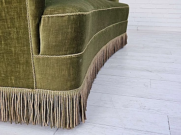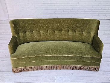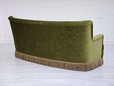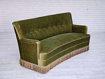 Danish three-seater 'Banana' sofa, 1970s. In very good original condition: no odours or stains. Light green velvet, beechwood legs. Springs in the seat. Produced by a Danish furniture manufacturer around the 1970s.