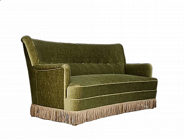 Danish Banana three-seater green velvet sofa with beech legs, 1970s