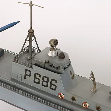 European-made wooden warship model, 20th century.