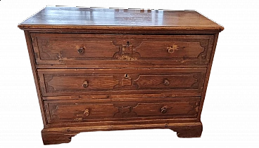 Emilian pine canterano commode, 17th century. Complete with certificate of authenticity.