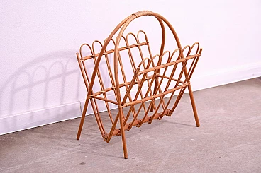 Rattan magazine rack by Jan Kalous for ÚLUV, 1960s