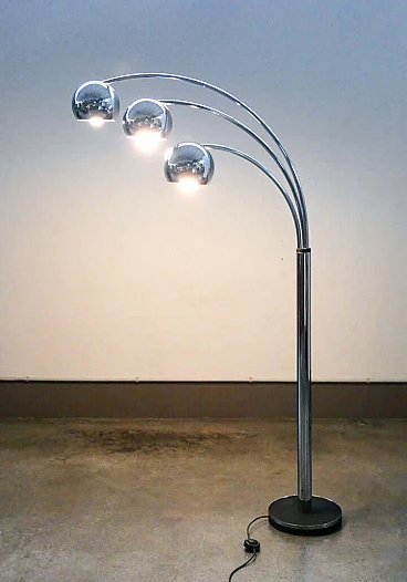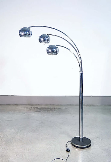 Three-light chromed metal floor lamp by Goffredo Reggiani, 1970s