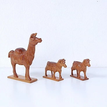 Carved wooden nativity, handmade work, art and production from Latin America, presumably Peruvian.