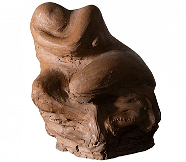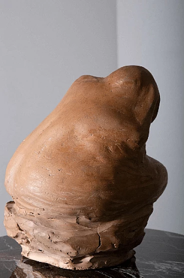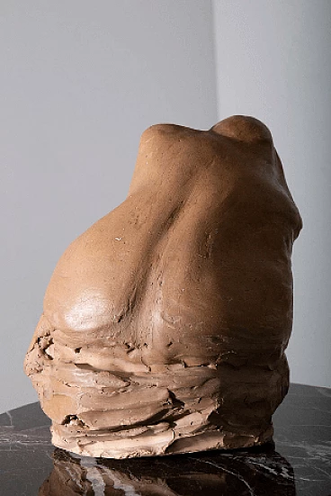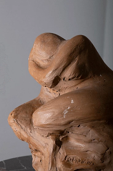 Incredible sculpture by an Italian artist from the 1970s-80s, signed with the enigmatic name "Compiani", is a true wonder of contemporary art. Although not much is known about the artist, the sculpture itself speaks volumes thanks to its captivating beauty and intriguing design. The sculpture depicts a seated anthropomorphic female figure, whose body is highly stylized with soft, flowing waves that create an almost ethereal sense of movement. The figure appears to be in a contemplative pose, cradling his head in his hands. It is a representation that invites reflection and evokes a profound emotional response. What makes this sculpture even more fascinating is the deliberate choice to leave the back and naked body exposed. This element adds a layer of vulnerability and authenticity to the work, as if the artist wanted to reveal the subject's inner essence. The sculpture's brutal, unfinished base is a deliberate artistic choice, a statement by the artist that the work is intentionally left almost unfinished. He adds a sense of rawness and immediacy to the work, inviting viewers to participate in his creative process. Its contemporary fluid and anthropomorphic style makes it perfect for modern living rooms and a valuable addition to any collector's treasure. His visual impact is undeniable, drawing viewers into his enigmatic world and leaving a lasting impression that lingers in the mind even after viewing.