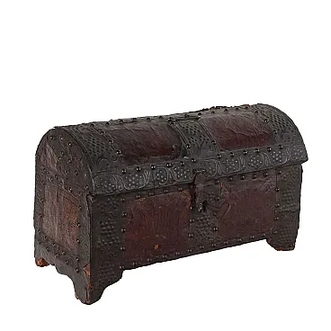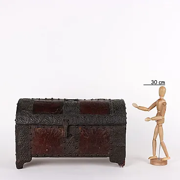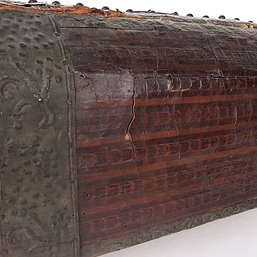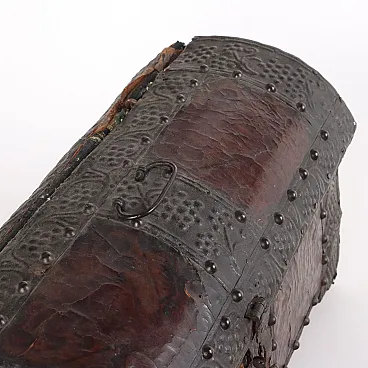 Wooden travel case lined with iron foil strips, mid-17th century