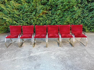 6 Red velvet chairs by Renato Zevi, 1970s