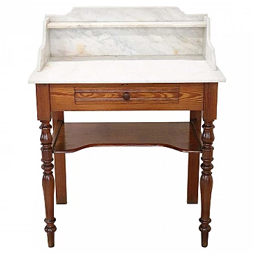 Beautiful larch wood toilet with marble top dating back to the end of the 19th century. Characterized by turned legs small and useful drawer under the top. This toilet is perfect to be reused as bathroom furniture by inserting a sink on the top. Perfect condition restored to report some halos on the marble. Price negotiable send also your proposals for purchase. Height on the top 80 cm.