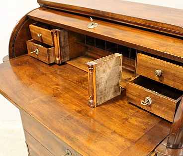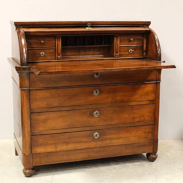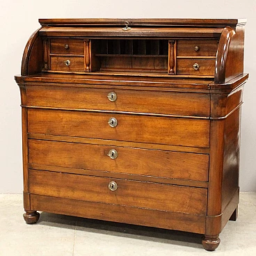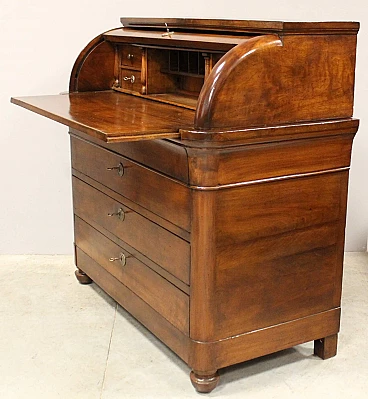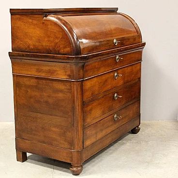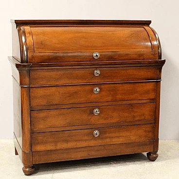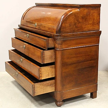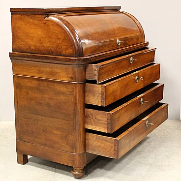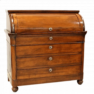 Carlo X solid walnut Capuchin roller flap desk with drawers in the lower part, first half of the 19th century. Coming from Lombardy. Restored (see photos).