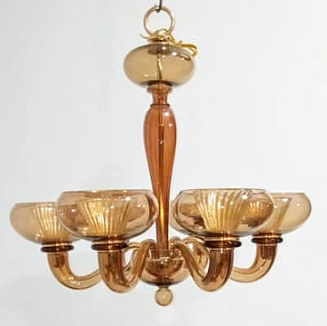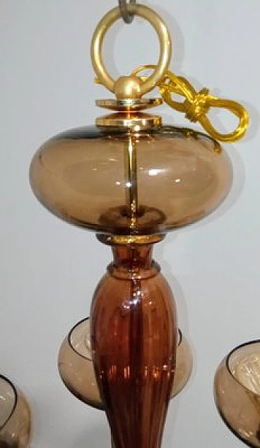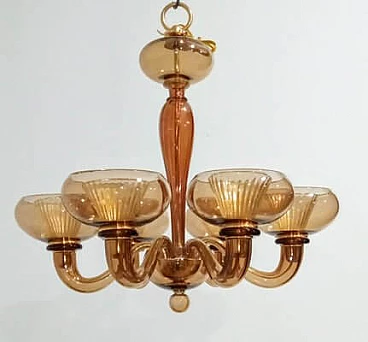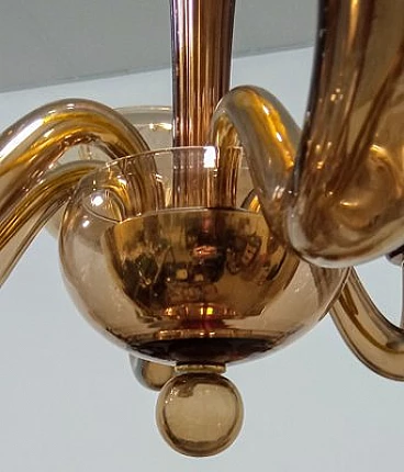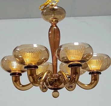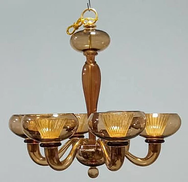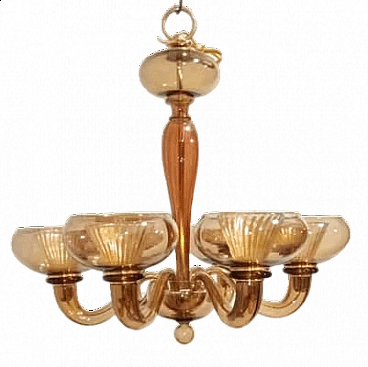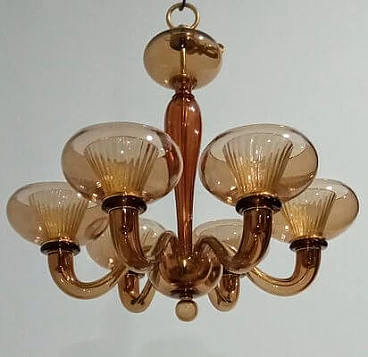Six-light Murano glass chandelier attributed to Archimede Seguso, 1980s